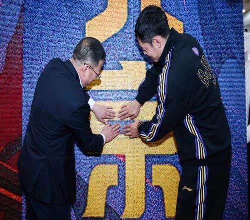仪式的最后,领导、嘉宾、球员代表、球迷代表、媒体记者共同完成北控男篮新赛季主视觉艺术装置的拼装。这幅凝聚众人心血,由40万枚彩虹钉拼插而成的巨幅艺术装置将在赛季期间屹立在北控男篮主场。