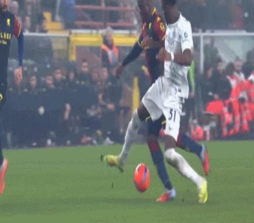 第68分钟,热那亚长传发动反击,维蒂尼亚抓住机会破门,1-2!