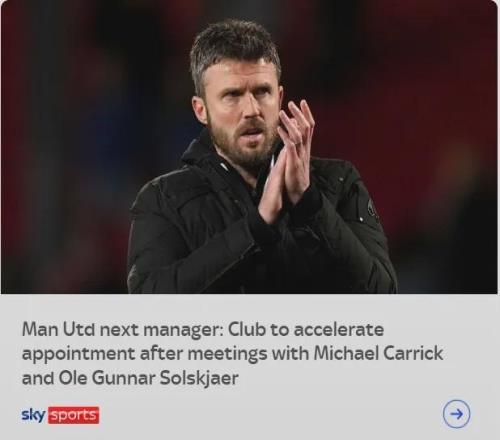 报道称,曼联已经计划和卡里克展开进一步谈判,目前还没有和索尔斯克亚开展类似谈判的相关计划,不过尽管如此,天空体育表示曼联高层还未作出最终决定, 索尔斯克亚也依然还是考虑的人选。